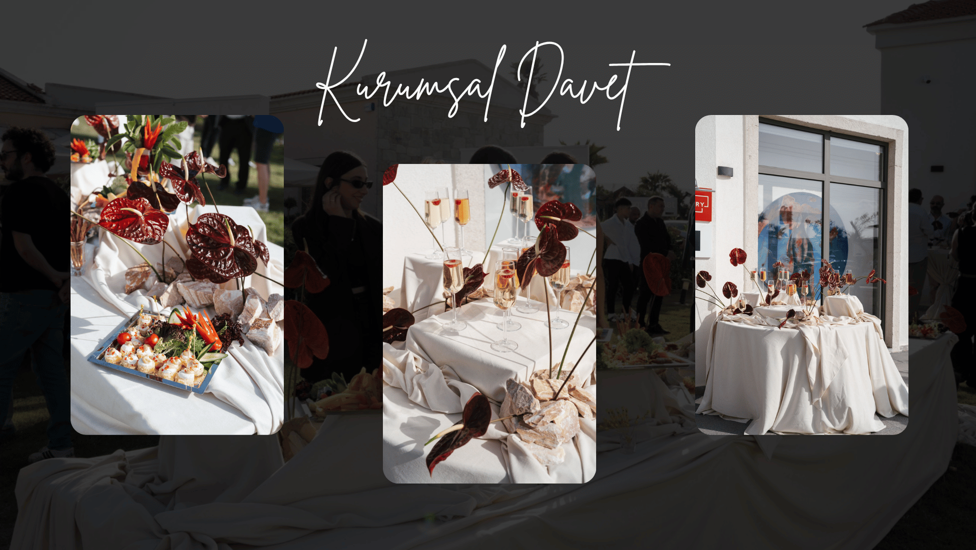 Myna Catering olarak markaların özel anlarını profesyonelce planlıyor ve kusursuz bir şekilde hayata geçiriyoruz. Açılış, lansman, temel atma töreni, yılbaşı etkinliği veya şirket pikniği gibi tüm kurumsal organizasyonlarda konsept tasarımından ikrama kadar her detayı özenle yönetiyoruz. Kurumsal imajınızı güçlendiren, misafirlerinizi etkileyen unutulmaz etkinlikler için yanınızdayız.